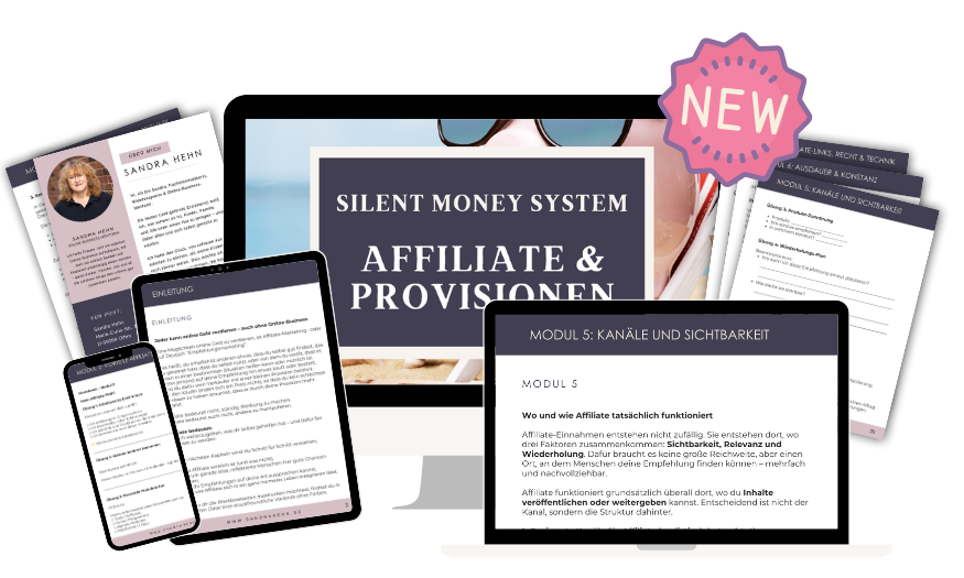 In meinem SILENT MONEY SYSTEM zeige ich dir, wie du dir ein wiederkehrendes passives Einkommen aufbaust, das „ganz leise“ immer wieder Geld für dich verdient.